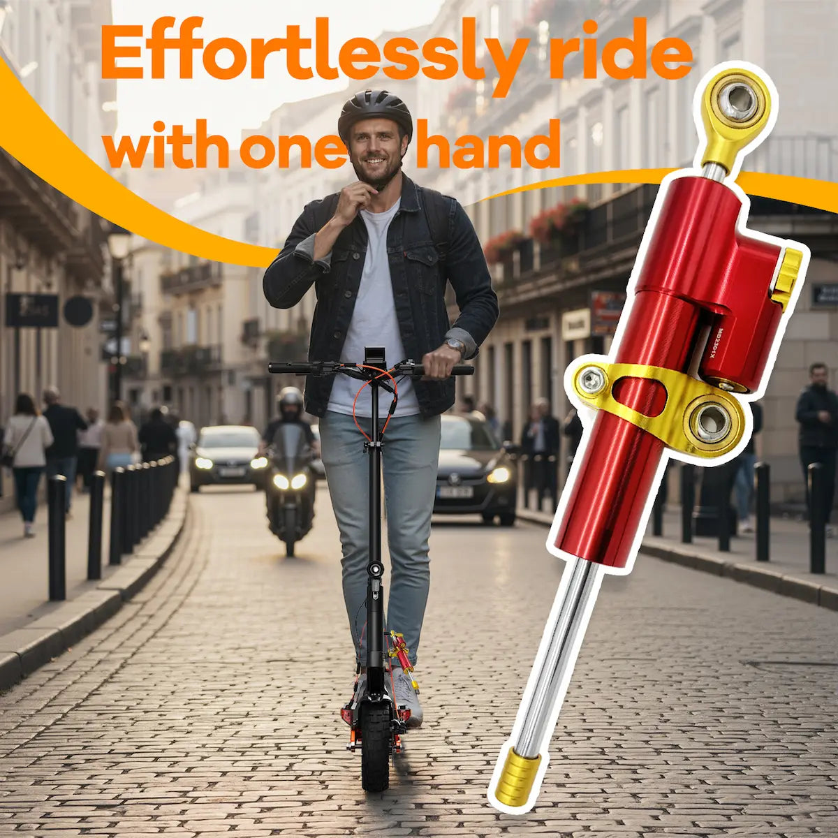 This electric scooter accessory prevents "death wobble" at high speeds and reduces arm pressure at moderate speeds.