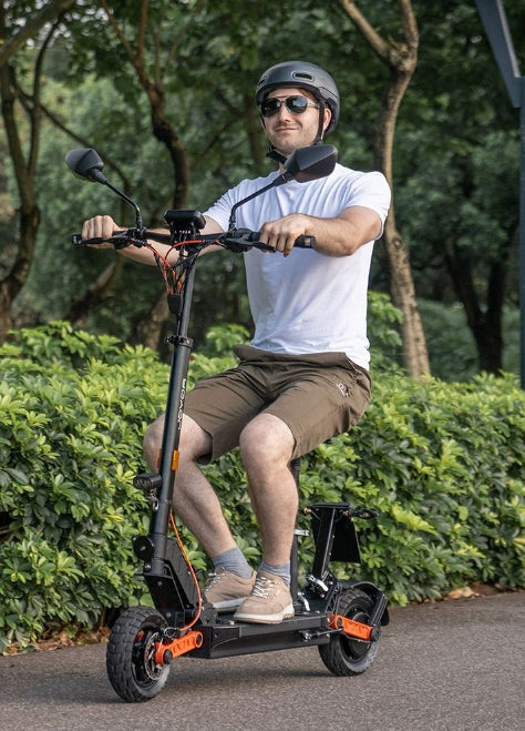 The S series boasts patented rubber suspension, superior shock absorbers for comfort, and precise mechanical brakes for safety, with anti-slip pedals for high-speed and off-road security.The scooter is equipped with 10-inch pneumatic tires to ensure a smooth, shock-absorbing ride on bumpy roads.