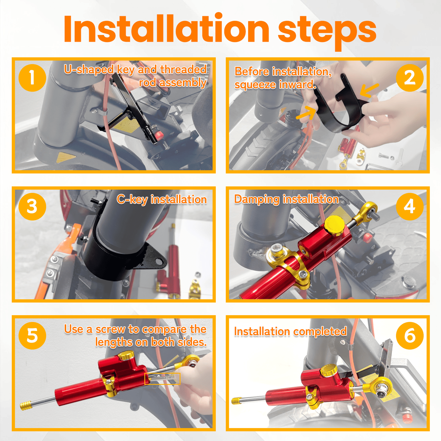 The scooter damper provides professional-grade stability, preventing sudden shakes and minimizing accident risks—perfect for everyday commuting or high-speed rides.