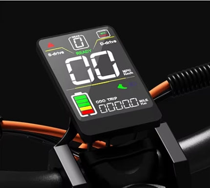 Hochauflösendes LCD-Display, Echtzeitanzeige von Fahrinformationen. Ergonomisch gestalteter einteiliger Lenker, ausgestattet mit elektrischer Hupe. Präzise Verzögerung mit Gashebel per Fingerdruck, Multifunktionstastatur zum einfachen Wechseln zwischen verschiedenen Fahrmodi. Front-, Heck- und Blinker-Steuerschalter sorgen für Fahrsicherheit.