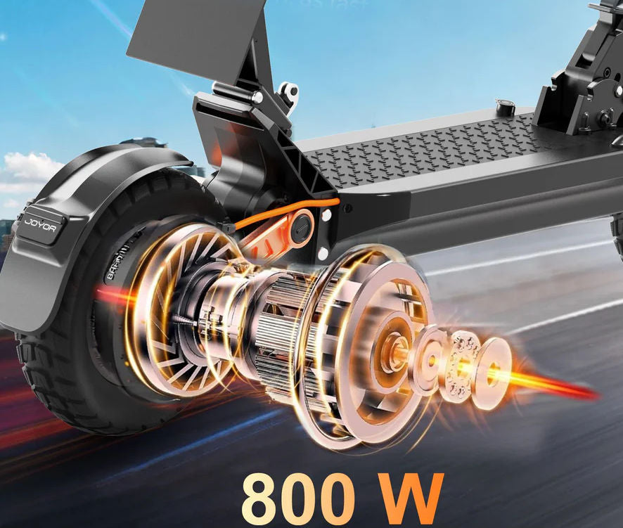 The S5 e-scooter features a 800W brushless motor for swift acceleration and 25-degree hill climbing, reaching max speeds of 45 km/h on diverse terrains.